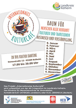 Das Projekt "Internationales Kulturcafé wird unterstützt von der AG Integration im Landkreis Kelheim. Das Bündnis für Menschenwürde ist Veranstalter.