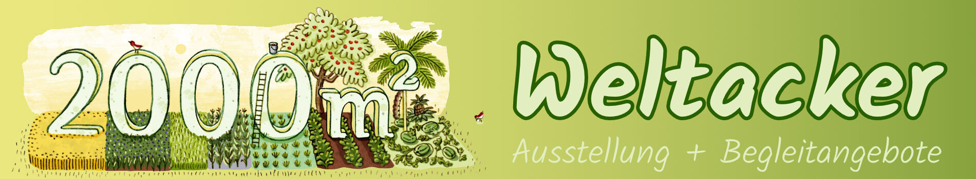2000 m² - so viel Ackerfläche steht jedem Menschen auf der Erde rechnerisch zu, um sich zu versorgen. 13 Rollups zeigen in der Ausstellung die weltweite Landwirtschaft im Kleinen: Was wächst für uns? Was lebt auf dem "Weltacker"? Wie gerecht sind Erzeugnisse verteilt? Was muss an Energie aufgewendet werden? Was fällt an Abfall an? Und: Was ist unsere Verantwortung für die Zukunft des "Weltackers"?